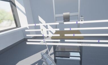 Nos expérimentations liées aux développements ont été réalisées dans l’usine école de l'IUT de Haguenau. Ainsi, un jumeau numérique de cette usine a été conçu, et nous développons des interactions simulant celles effectuées dans la réalité. L’ensemble des gestes, des actions, et des déplacements de l’opérateur dans le jumeau numérique sont rendus possibles par l’utilisation d’un casque de réalité virtuelle ou de dispositifs immersifs tel que des équipements de type « CAVE » ou des écrans 3d stéréoscopiques.